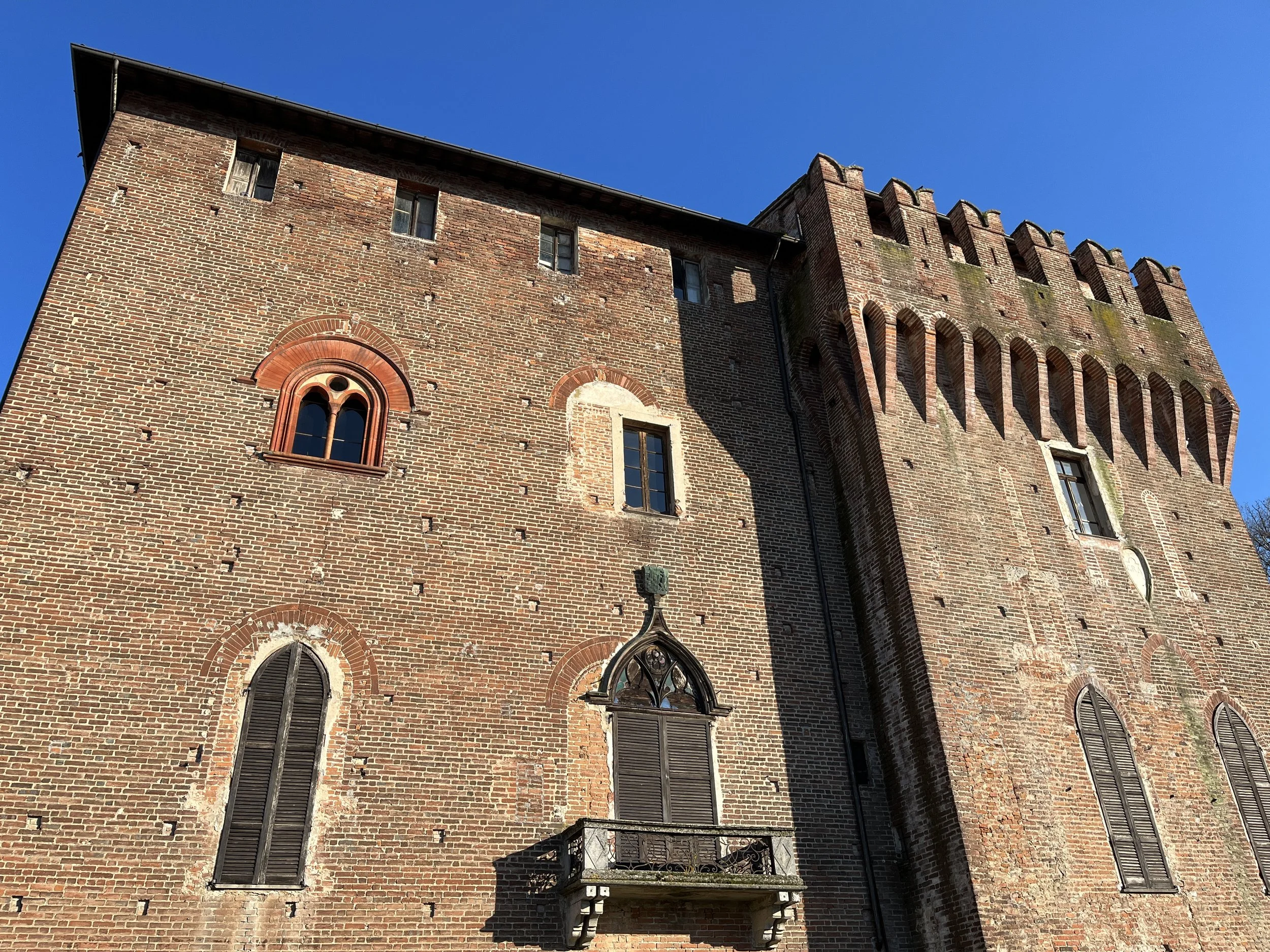 Furono probabilmente dispute afferenti alla giurisdizione temporale, che portarono nel 1221 l’arcivescovo di Milano Enrico da Settala a scomunicare il podestà di Monza[84], un atto al quale il Comune cittadino rispose bandendo il prelato. Al fallimento del tentativo di mediazione del legato pontificio Ugolino d’Ostia, seguirono quindi nuovi anni di guerra che videro contrapporsi da una parte la fazione del popolo e delle istituzioni cittadine da essi controllate, e dall’altra la nobiltà dei capitanei e valvassori e le istituzioni religiose. Secondo le Notae Sancti Georgii nel periodo natalizio di quell’anno cominciò un vero e proprio esodo della classe nobiliare la quale, capitanata dall’arcivescovo, abbandonò la città di Milano per prepararsi allo scontro armato. L’arcivescovo si rifugiò a Cantù, mentre le famiglie della nobiltà cittadina vennero accolte presso i castelli della nobiltà rurale incluso quello della famiglia dei de Carugo. I castelli del Contado della Martesana e del Seprio divenuti così le roccaforti della nobiltà sia rurale che cittadina, vennero attaccati dalle milizie popolari capitanate dal podestà Ardigotto Marcellino, le quali, nell’agosto del 1222, giunsero a distruggere il castello dei de Carugo[85]. Ad oggi, dell’antico fortilizio merlato, rimane solo parte di una torre.